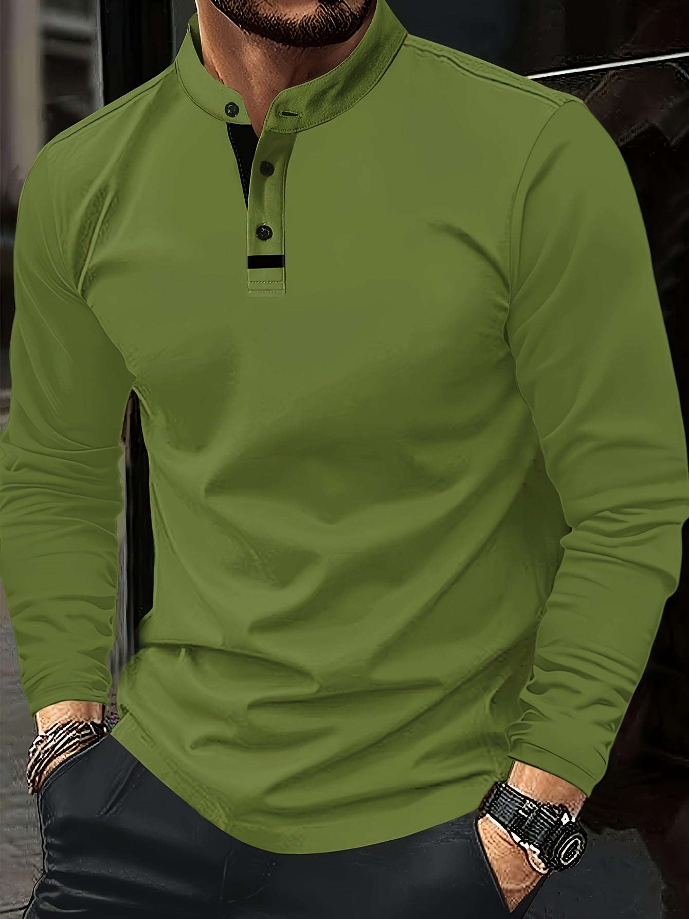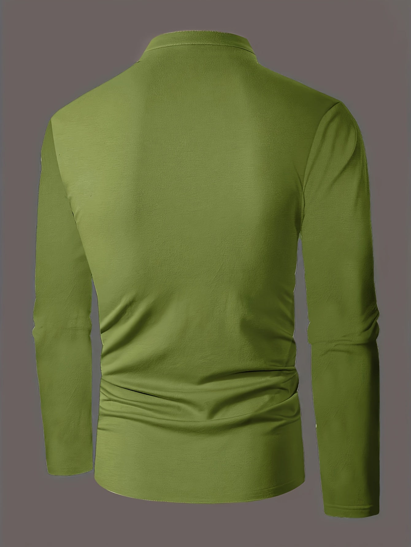 Elias – Klassisches Langarm-Polo in Olivgrün