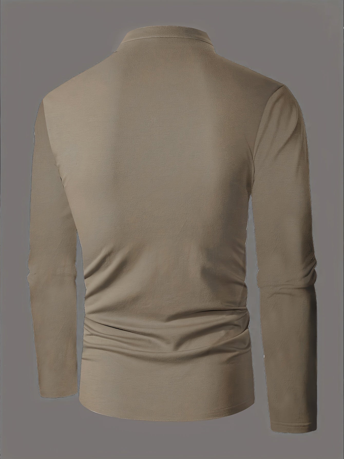 Das Elias Polohemd vereint klassischen Stil mit modernem Komfort. Gefertigt aus angenehm weichem Stoff, bietet es dank Rundhalsausschnitt mit Knopfdetail einen lässigen Twist. Die dezente Farbe Olivgrün macht es zu einem vielseitigen Essential für Frühling und Herbst – perfekt für entspannte Freizeit-Looks oder smarte Casual-Outfits.