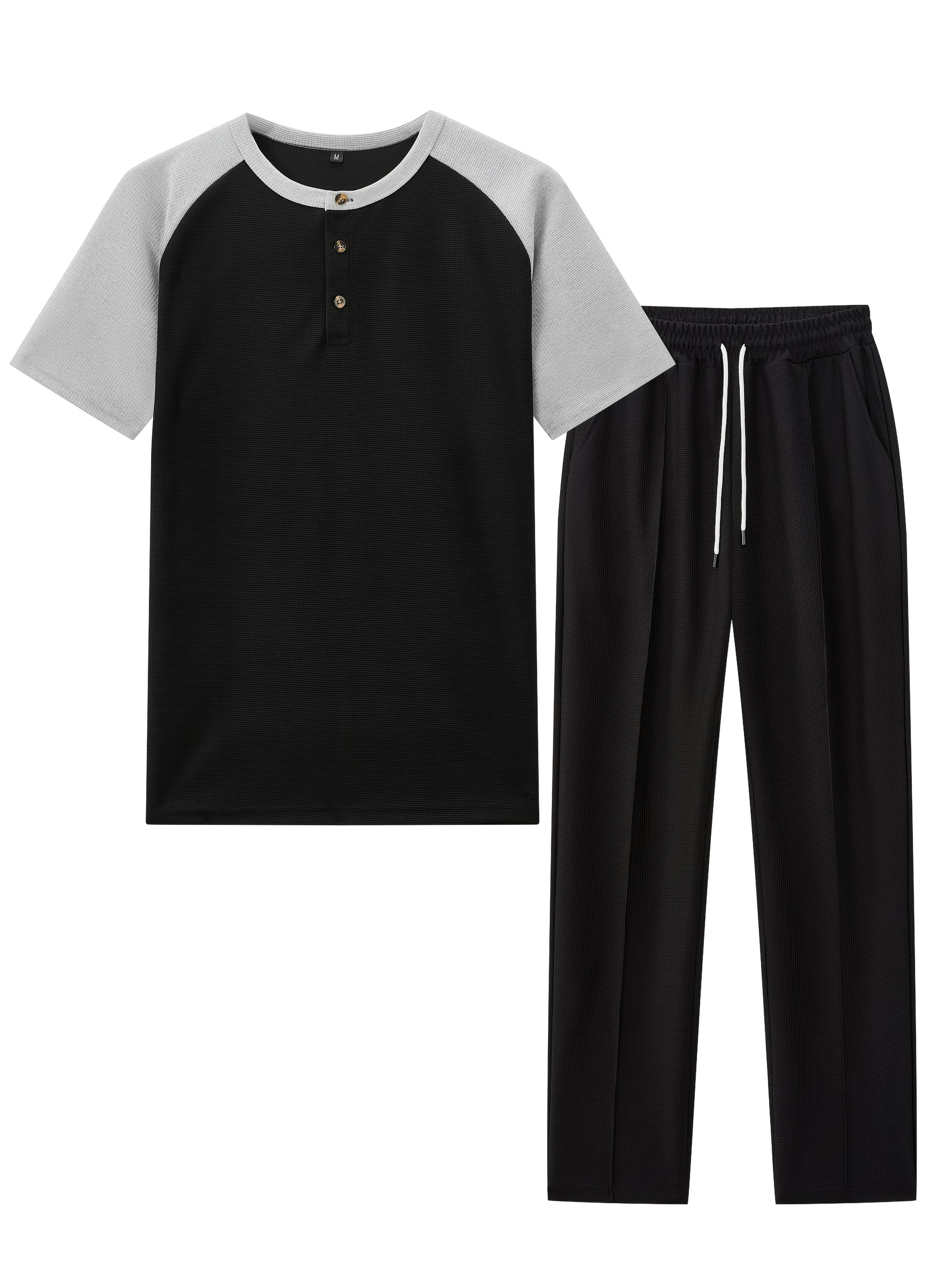 Das Noah Casual Set vereint entspannten Stil mit hohem Tragekomfort. Das klassische Kurzarmshirt und die bequeme Bundhose aus leichtem, atmungsaktivem Stoff machen es zum idealen Begleiter für warme Sommertage. Schlicht im Design und vielseitig kombinierbar – perfekt für Freizeit, Urlaub oder entspannte City-Looks.
